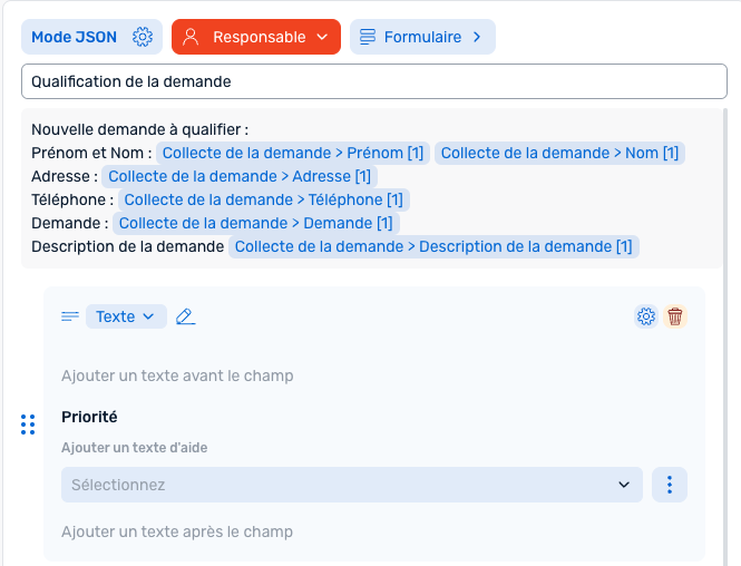 Vous pouvez ensuite créer les champs de qualification et de priorisation grâce à des listes déroulantes et enfin un champ pour "Accepter ou Refuser la demande".