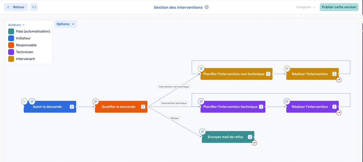 Avec Agence HIC, en quelques clics et sans écrire une ligne de cade, vous pouvez créer la structure de votre processus ! Tout est possible et 100% personnalisable selon le savoir-faire. Vous pouvez, définir les acteurs, créer des chemins dépendants de conditions ou encore créer des boucles itératives.